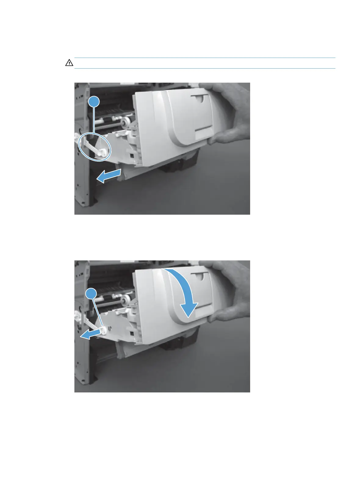 4. After releasing from the hinge pins, move the cartridge door to the right to release the pressure on