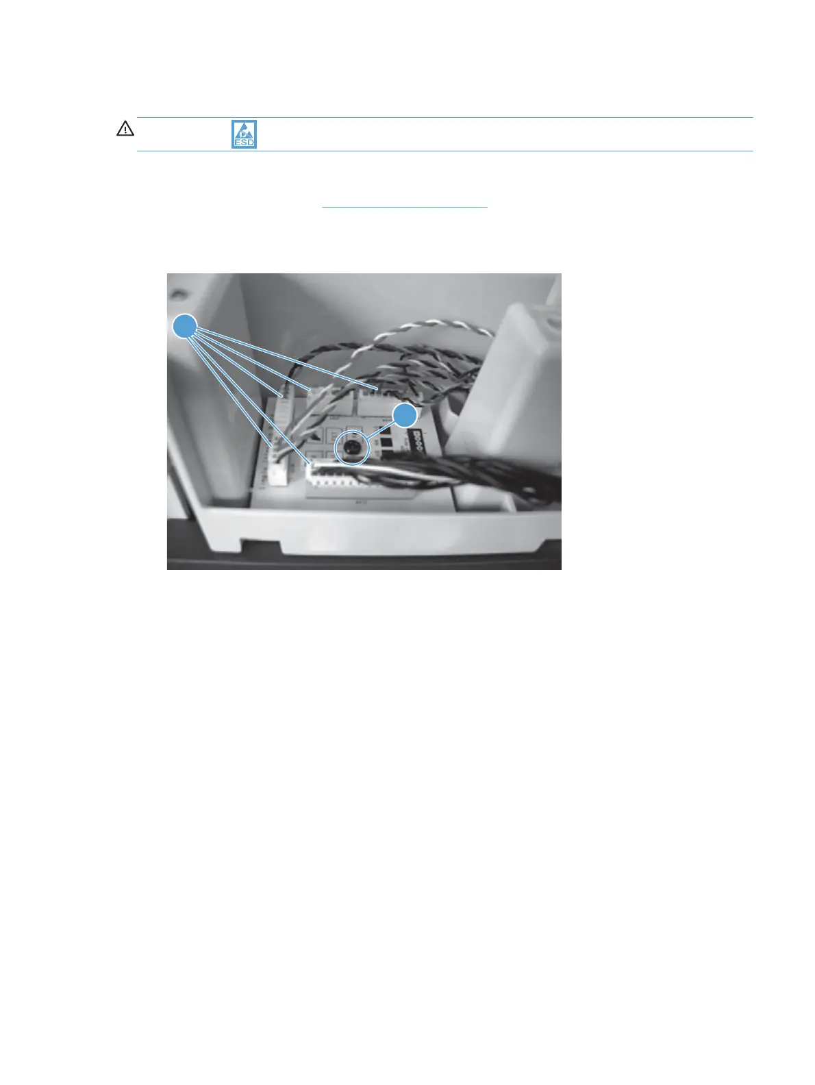 2. Disconnect five connectors (callout 1), remove one screw (callout 2), and then remove the PCA.