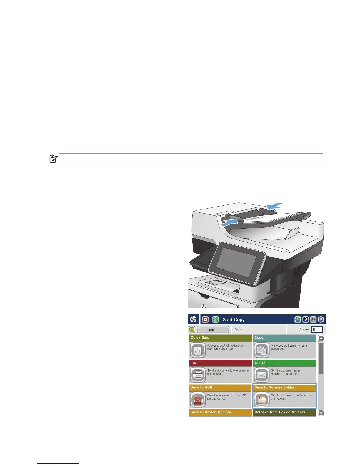 The product can scan a file and save it in a folder on the network. The following operating systems