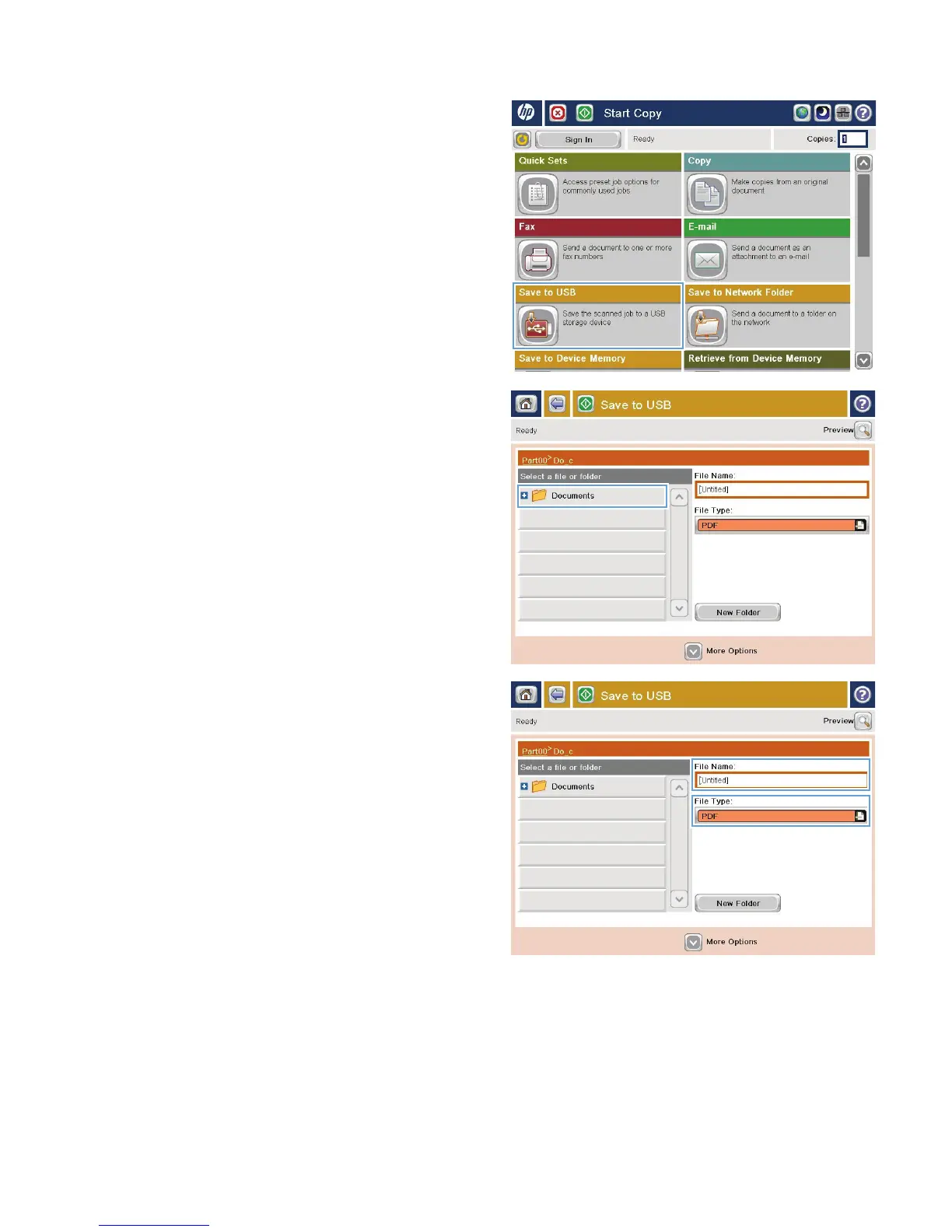 panel, scroll to and touch the Save to USB