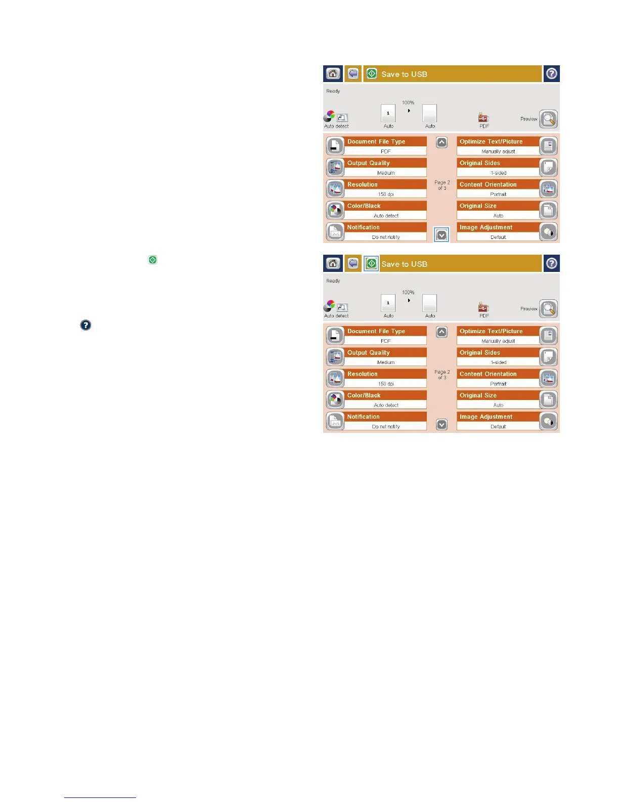 6. To configure settings for the document, touch