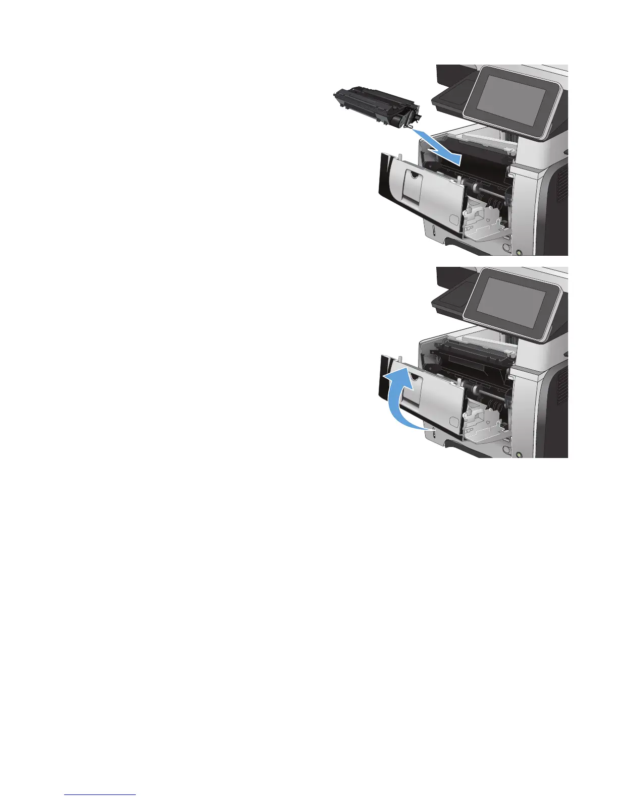 7. Align the toner cartridge with the tracks inside