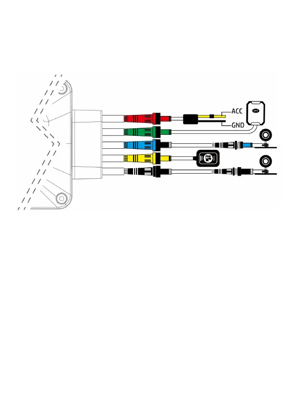 按端子顏色將配件及電源線與主機連接