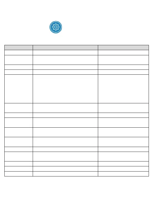 2. 可用選單如表,請依個人需求或喜好進行設定。