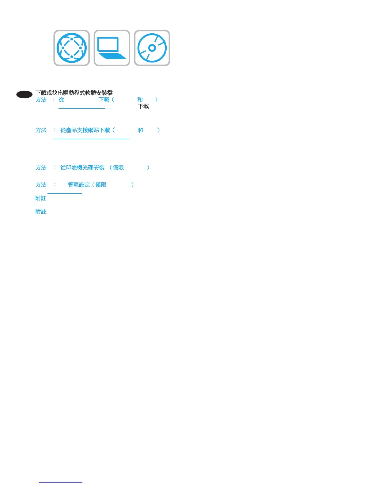 附註: 針對網路連線產品的進階設定,請在軟體安裝完成後,於網頁瀏覽器的位址列輸入產品 IP 位址,以存取產品的 Embedded Web