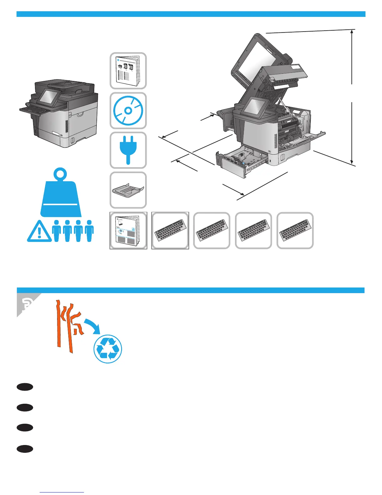 Remove all tape and packing material from outside the product. Open all doors and paper trays, and remove all tape, orange plastic tray