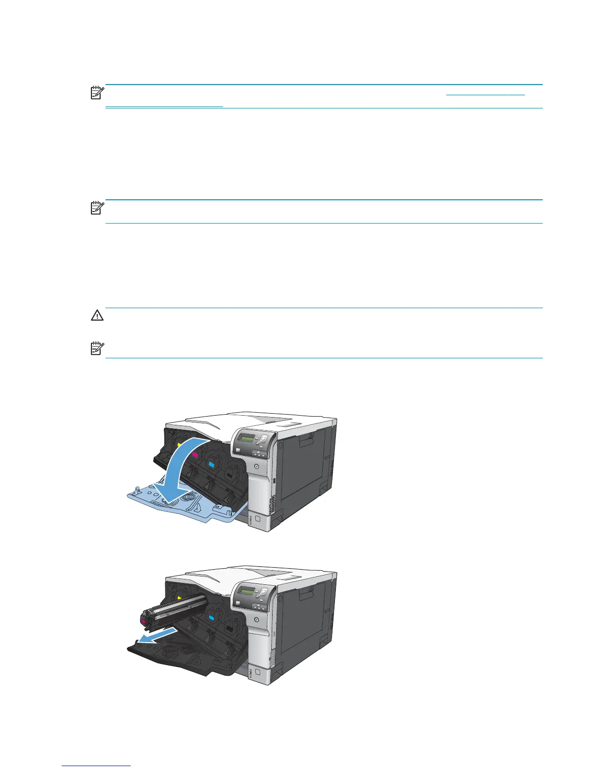 CAUTION: If toner gets on clothing, wipe it off with a dry cloth and wash the clothes in cold water. Hot water