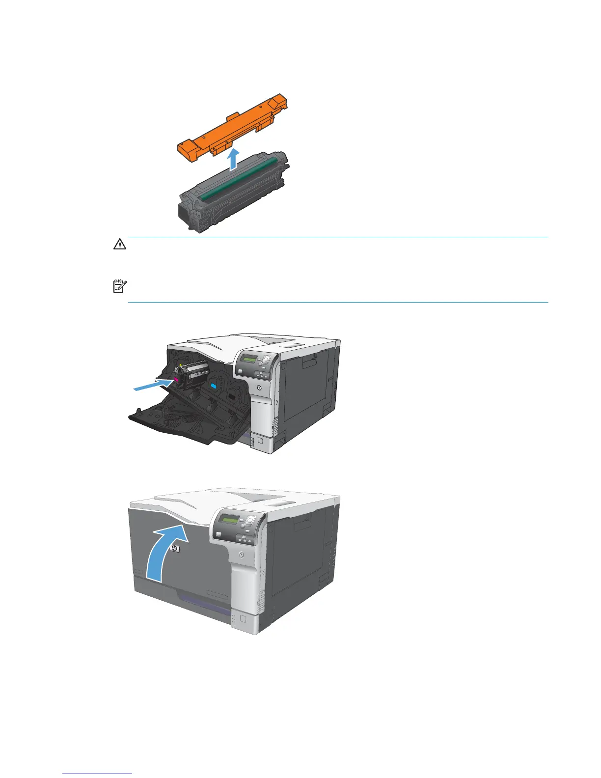 5. Remove the orange protective cover from the print cartridge. Place the protective cover on the used