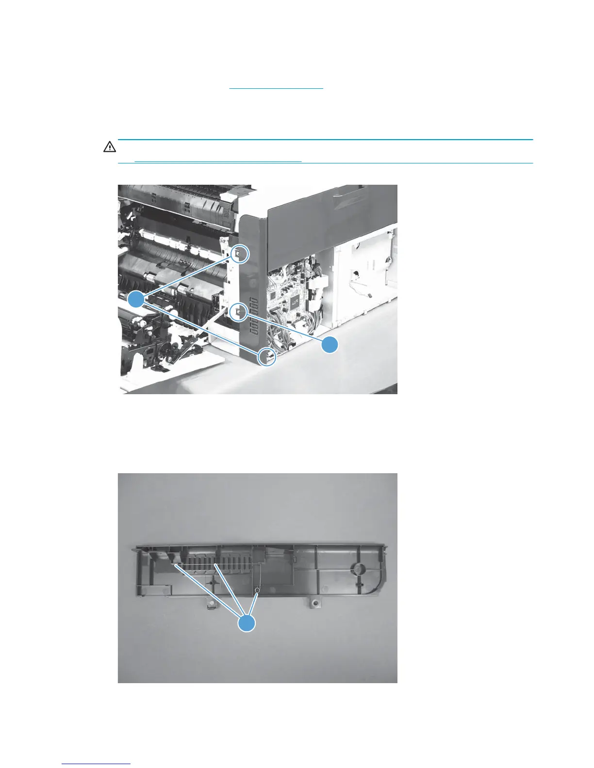 3. Remove two screws (callout 1), release one tab (callout 2), and then remove the cover.