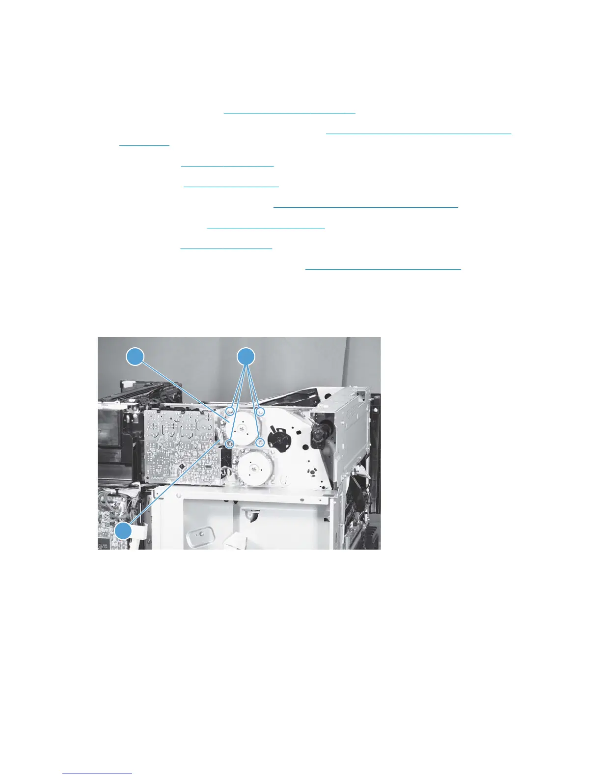 Disconnect one connector (callout 1), remove four screws (callout 2), and then remove the motor (callout 3).