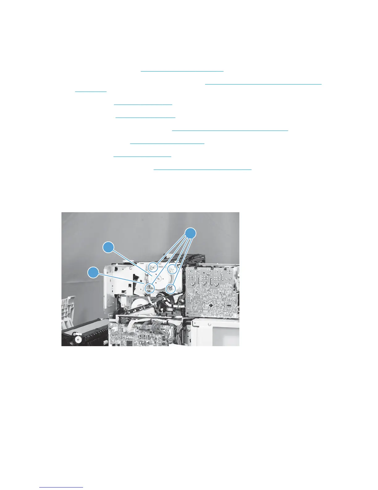Disconnect one connector (callout 1), remove four screws (callout 2), and then remove the motor (callout 3).