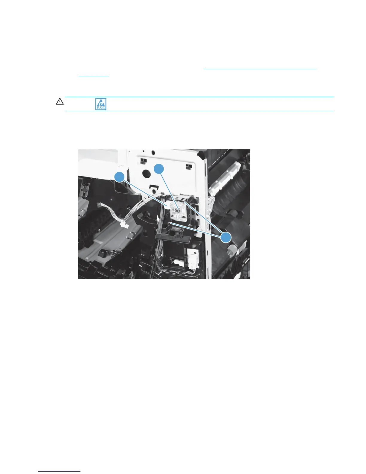 2. Disconnect one connector (callout 1), release two tabs (callout 2), and then remove the PCA (callout 3).