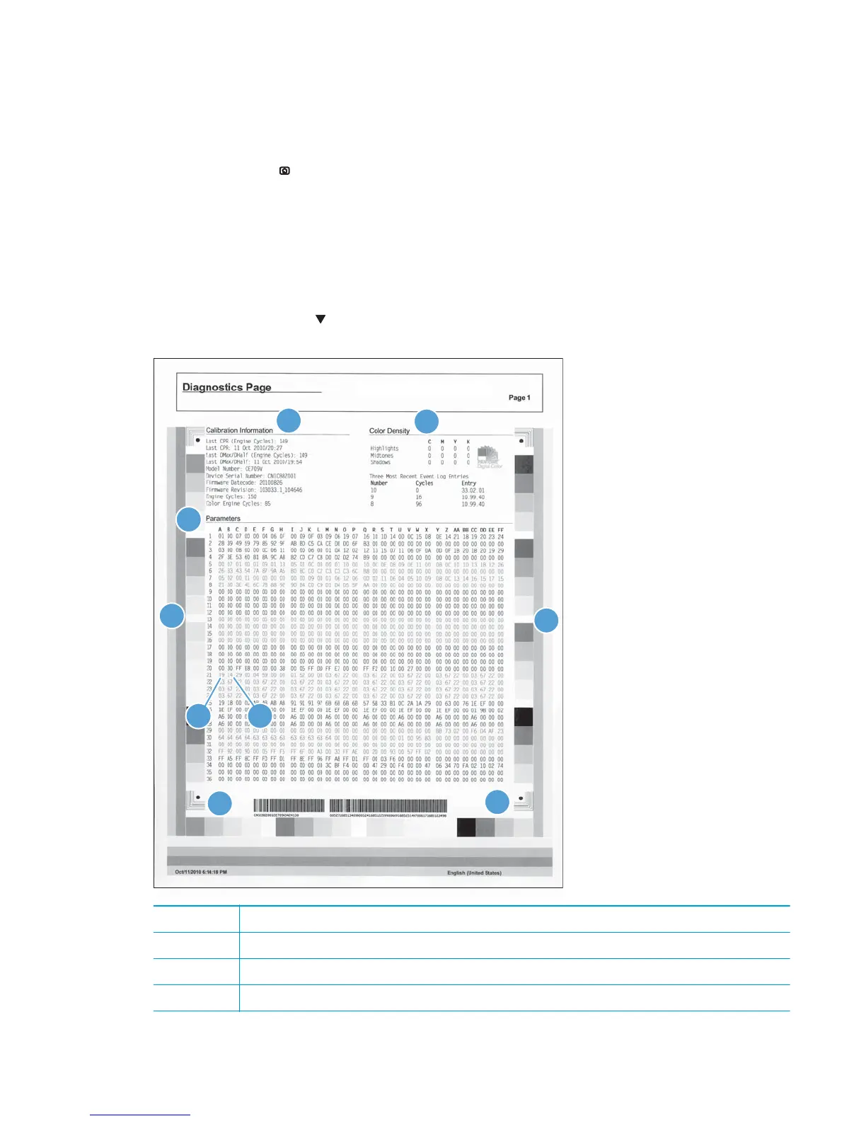 Use the diagnostics page to evaluate problems with color plane registration, EP parameters, and print