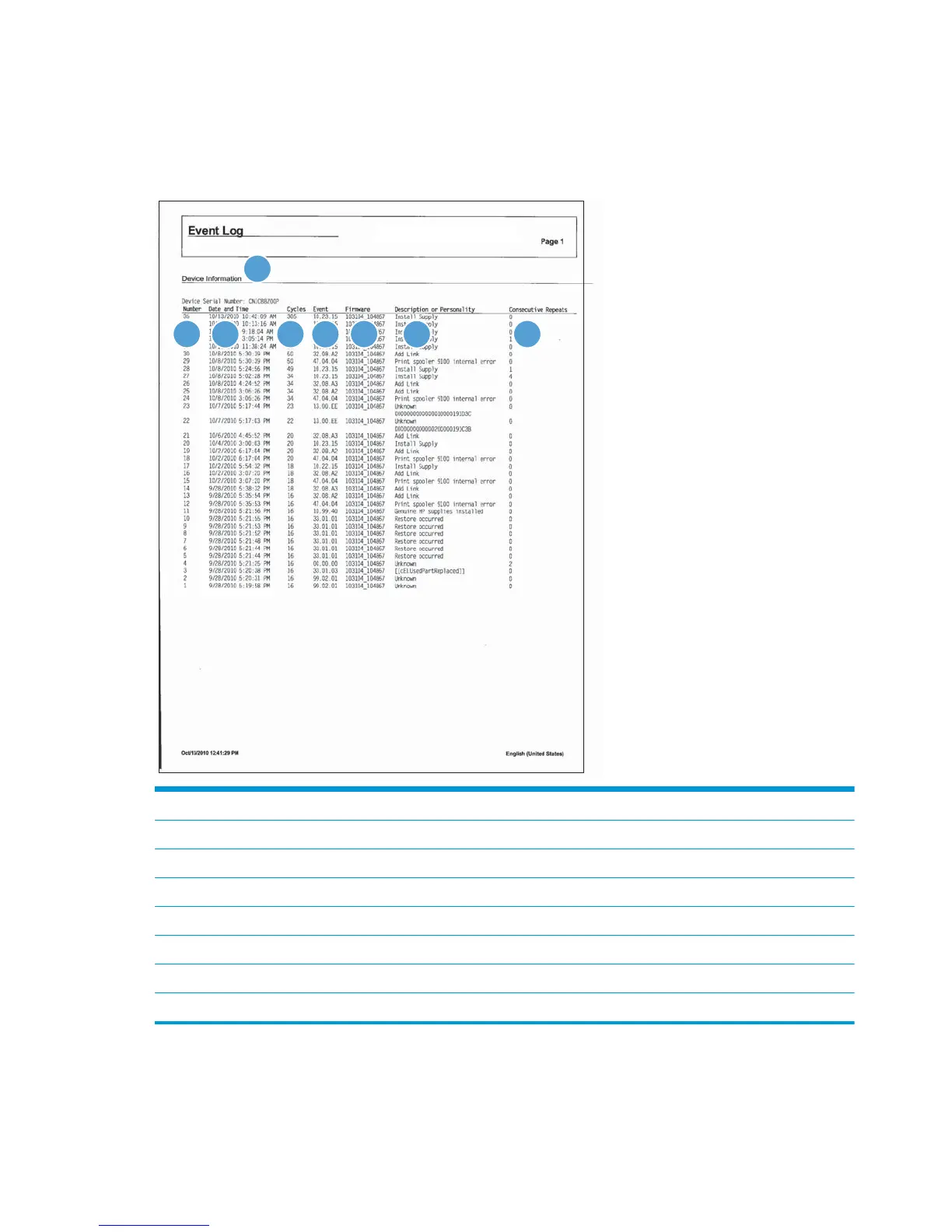 See the control-panel message and event-log entries section of the product troubleshooting manual for