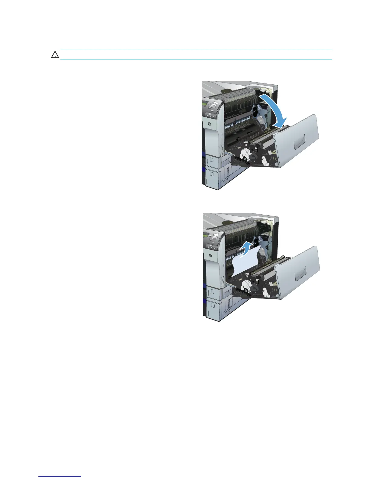 WARNING! The fuser can be hot while the product is in use. Wait for the fuser to cool before handling it.