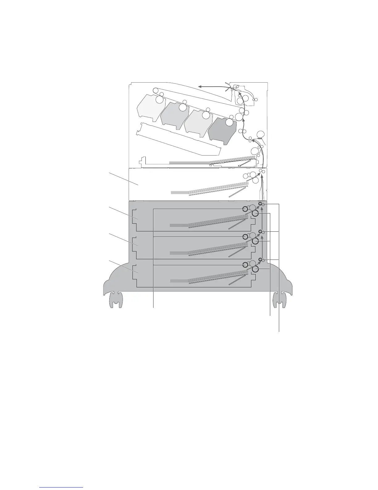 The 3x500-sheet paper deck is installed at bottom of the product. It picks up the paper and feeds it to the