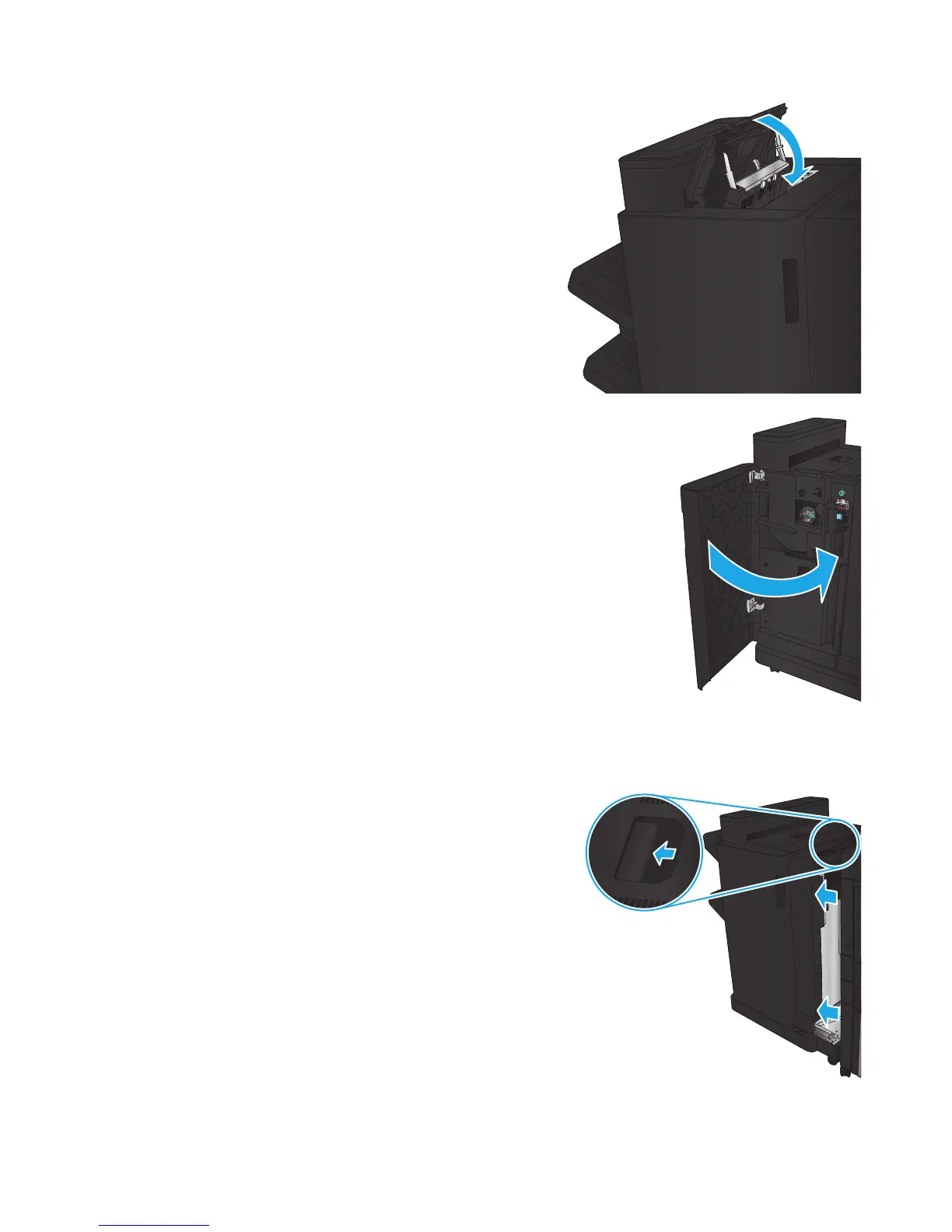 Clear a connection jam in the stapler/stacker with hole punch accessory