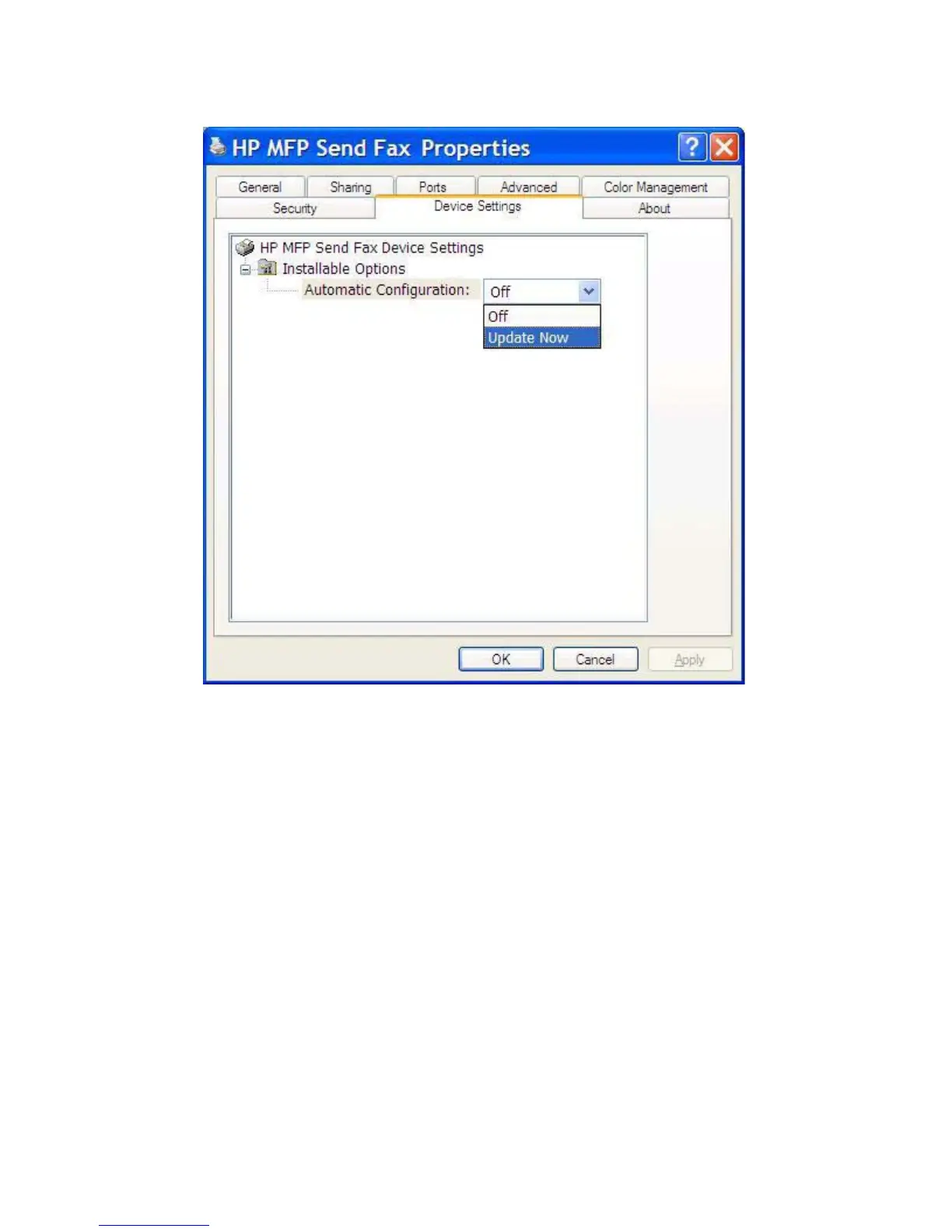 4. In the Automatic Configuration: drop-down menu, select Update Now.