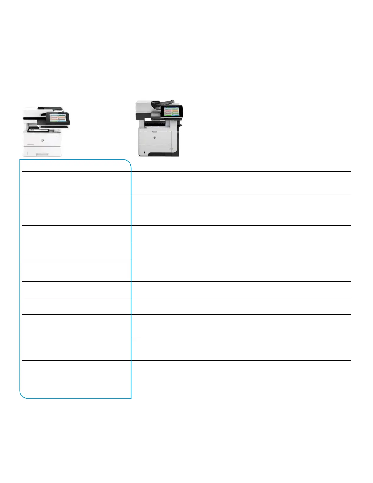 The following table compares the new HP LaserJet Enterprise MFP M527 series with the