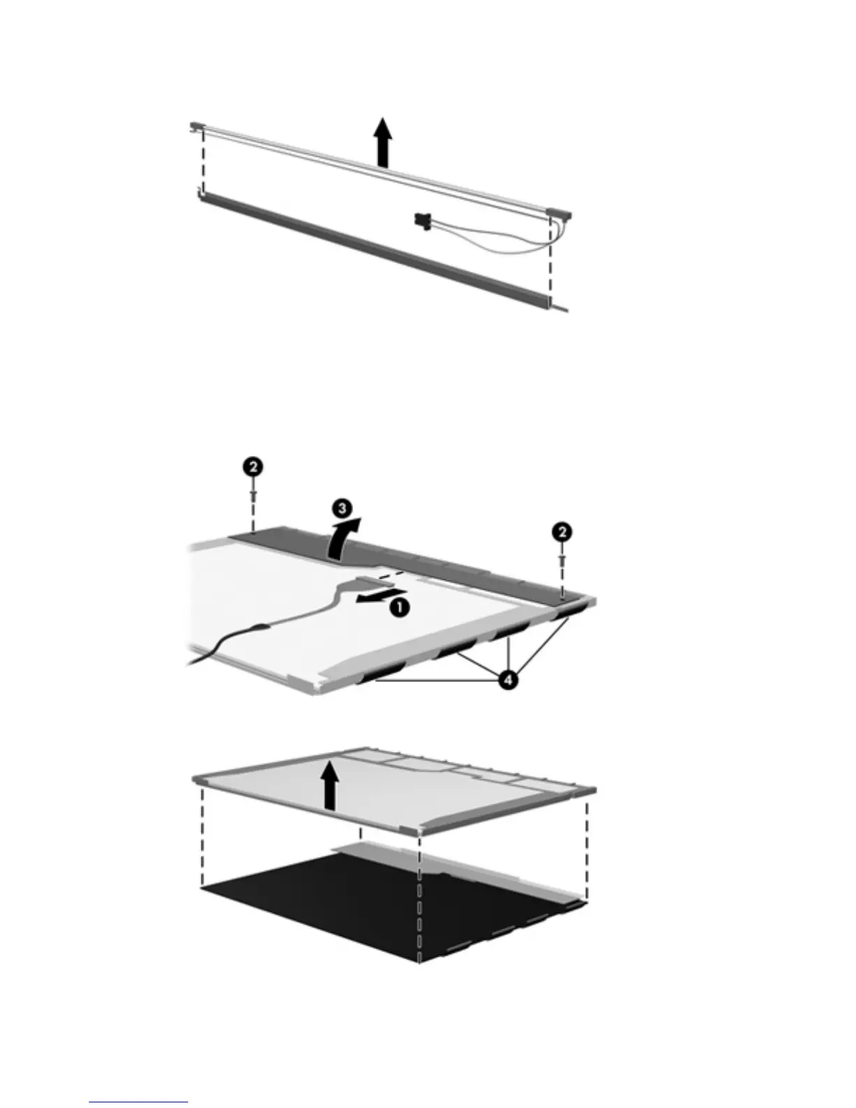 Remove the screws (2) that secure the LCD panel to the display rear panel.