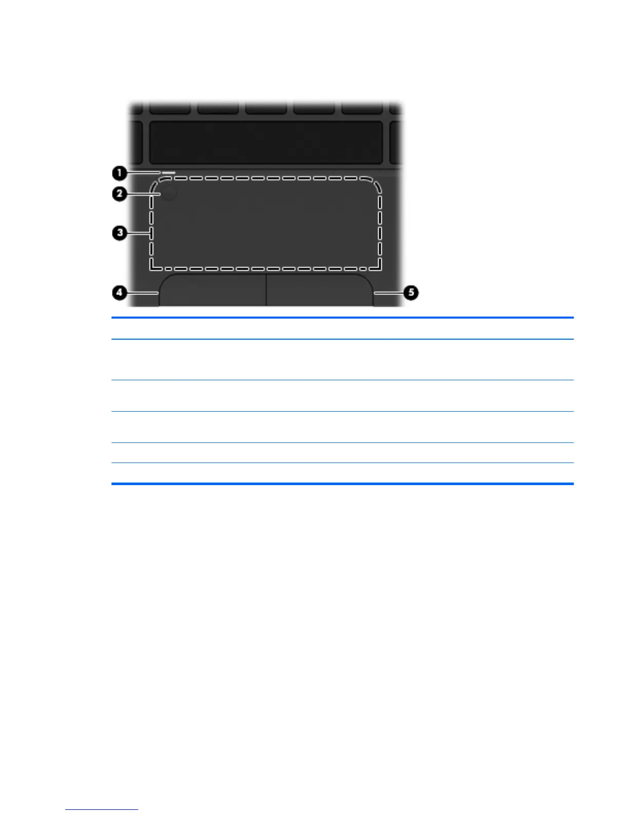(4) Left TouchPad button Functions like the left button on an external mouse.