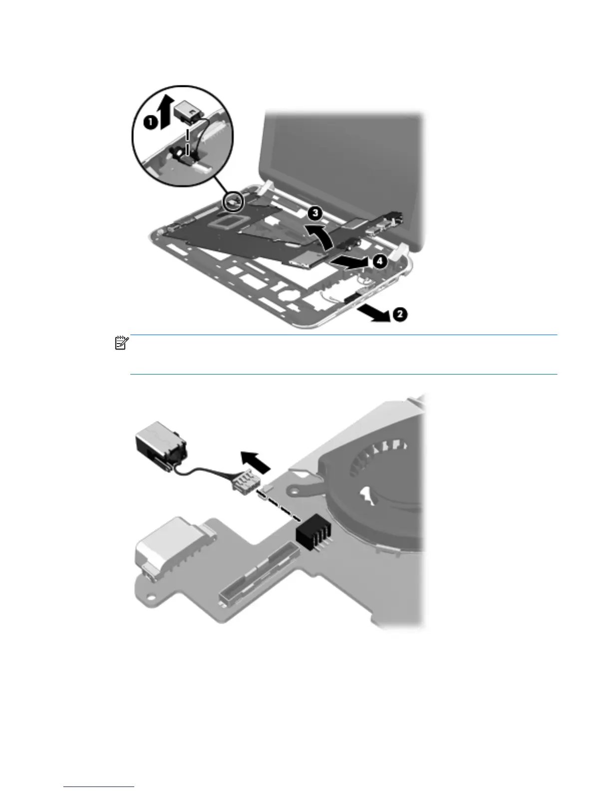 NOTE: If it is necessary to replace the power connector cable, turn the system board upside