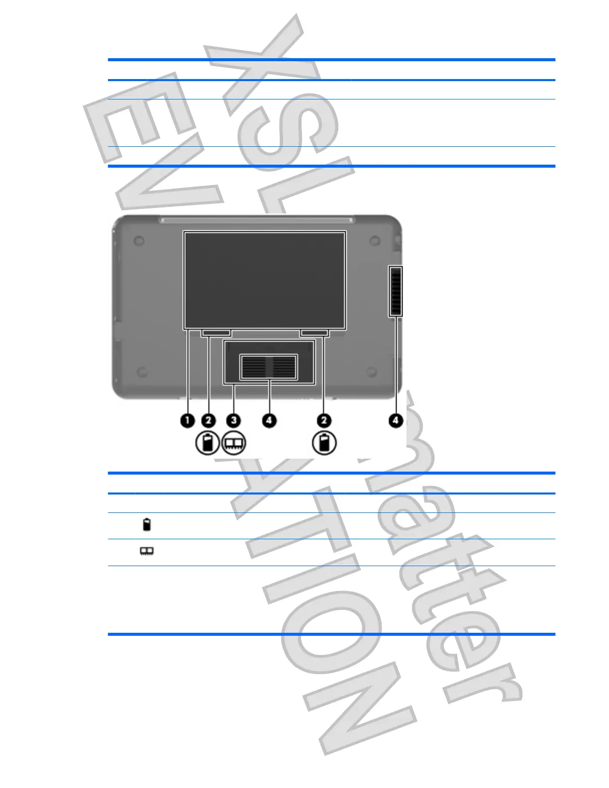 (2) Battery release latches (2) Release the battery from the battery bay.