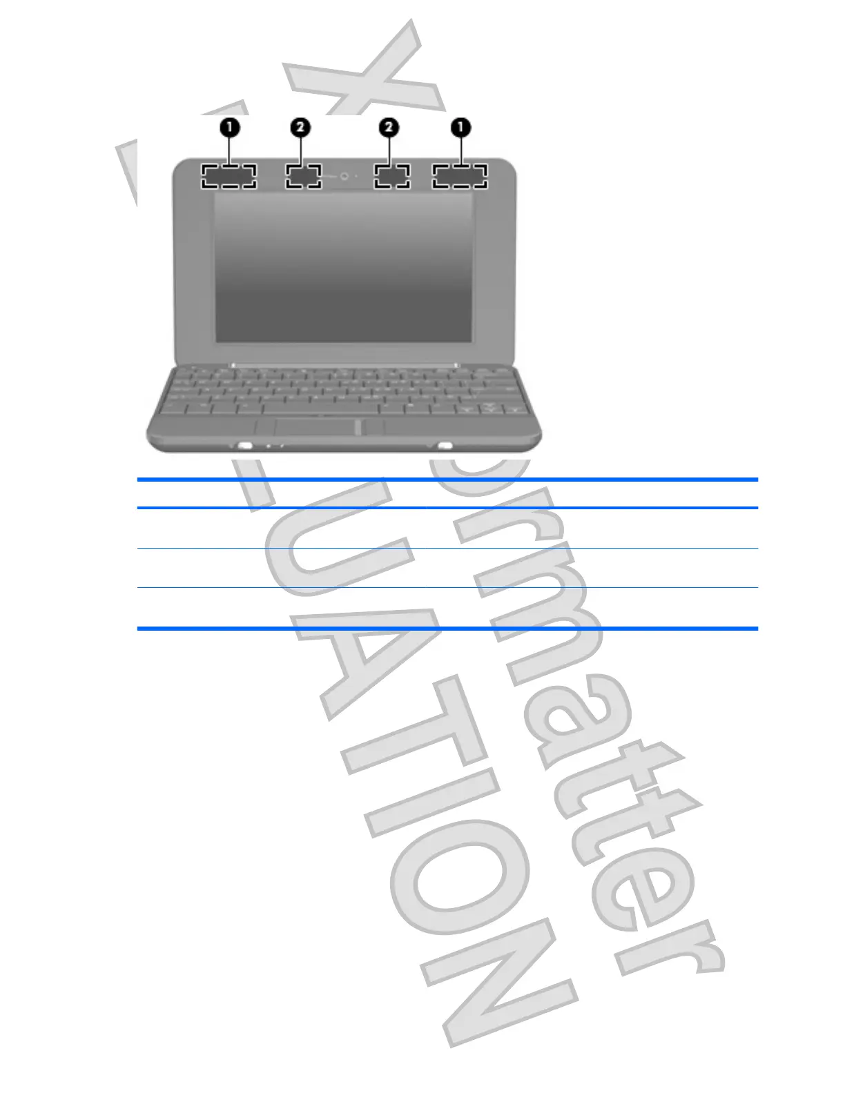 (1) WLAN antennae (2)* Send and receive wireless signals to communicate with wireless