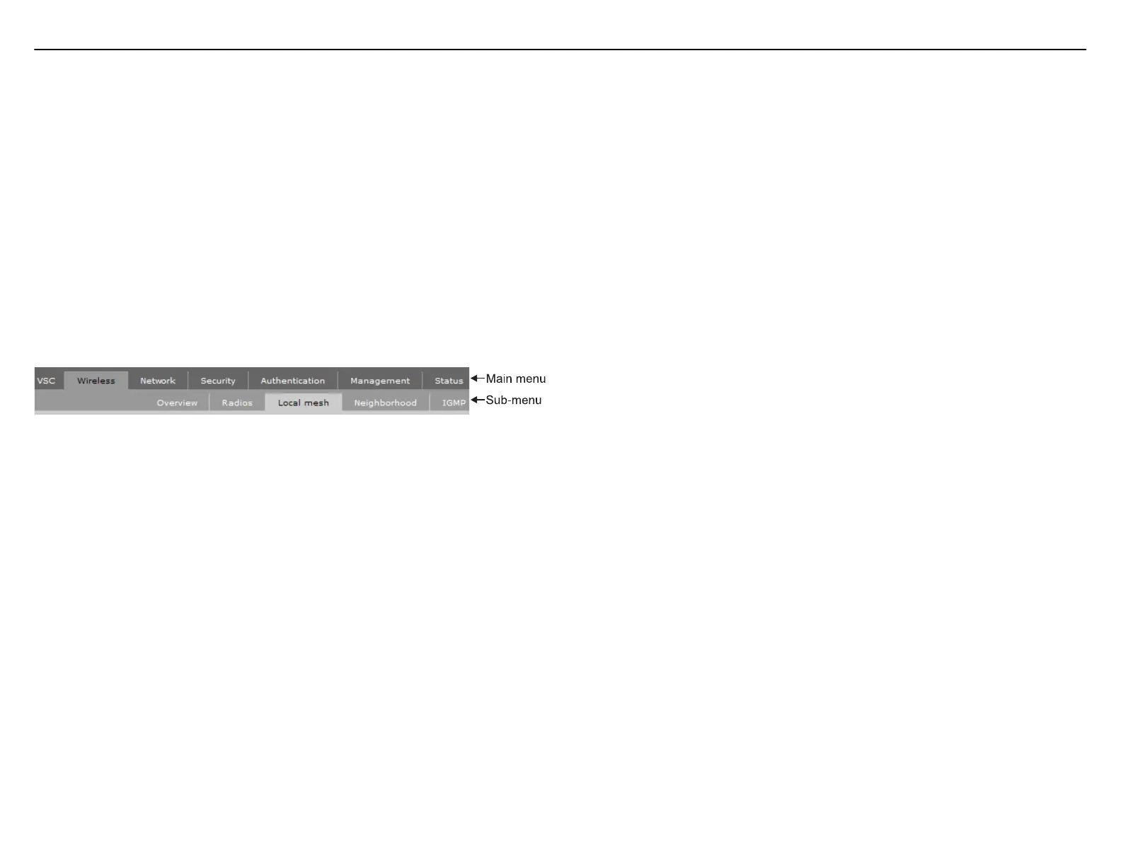 Wireless menu and then the Local mesh sub-menu, as follows: