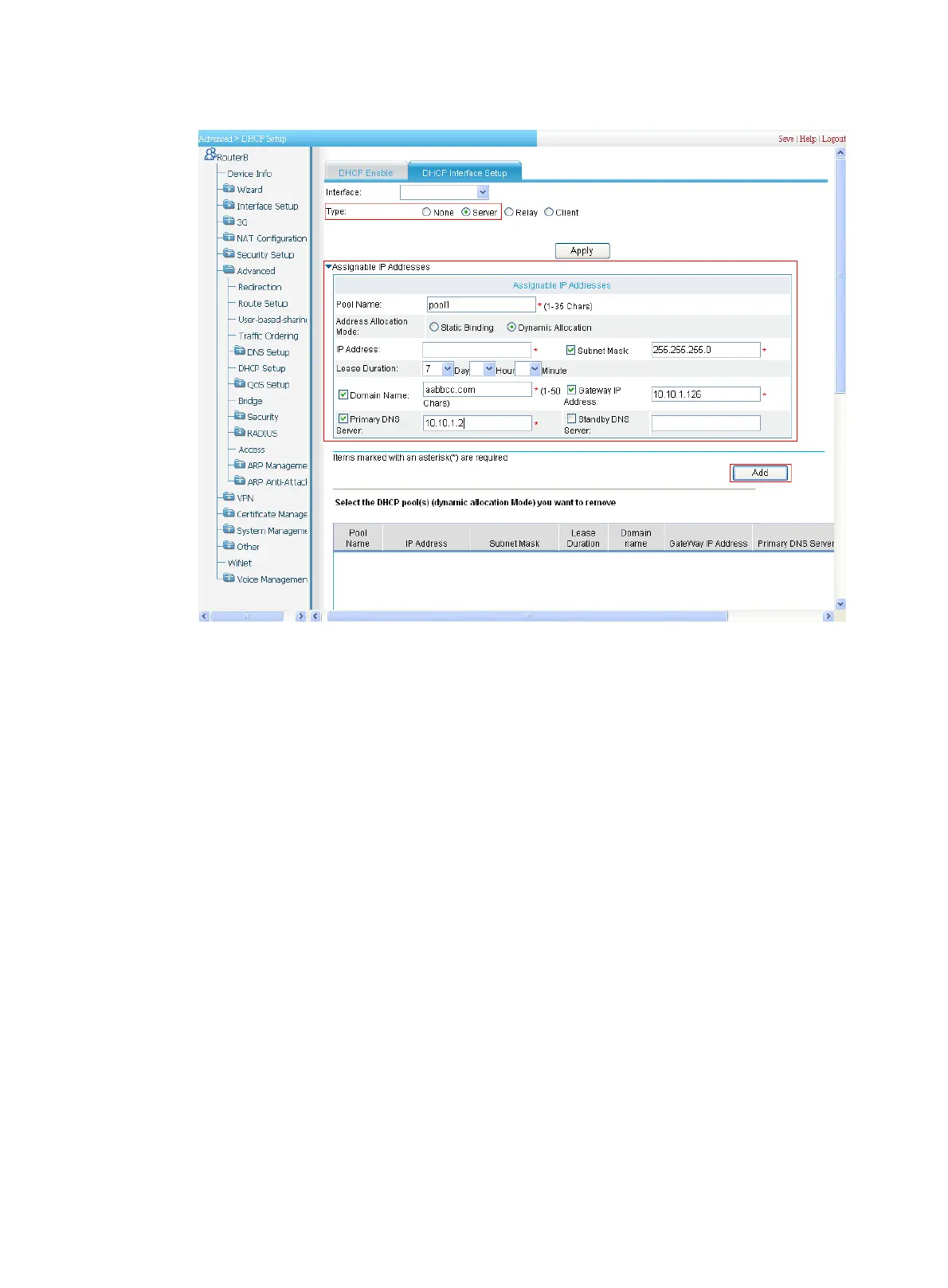 1. Select Advanced > DHCP Setup from the navigation tree.