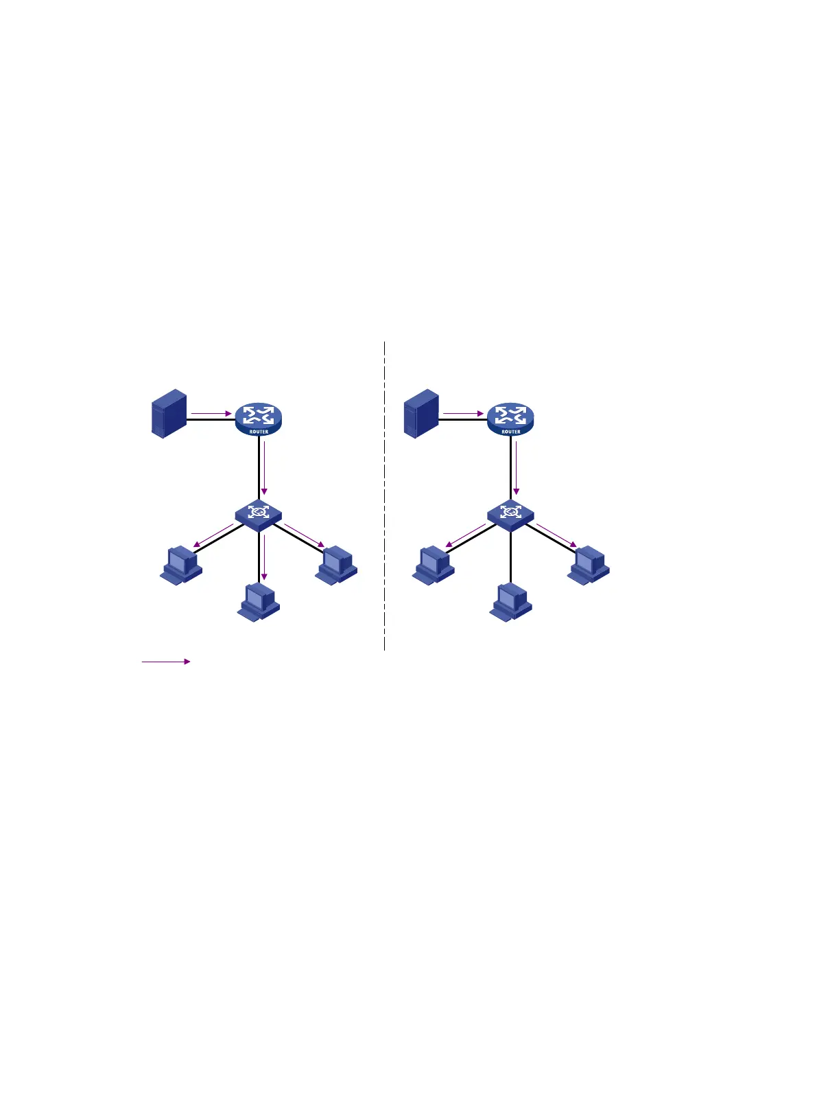 Figure 10 Multicast packet transmission without and with IGMP snooping