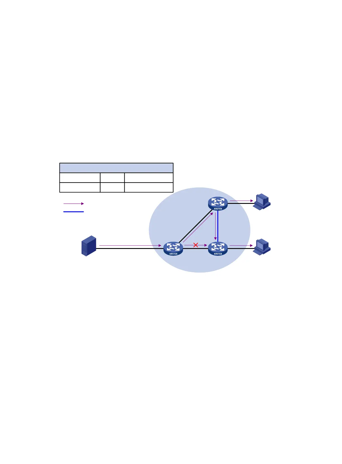 path: Router A to Router B and then to Router C.