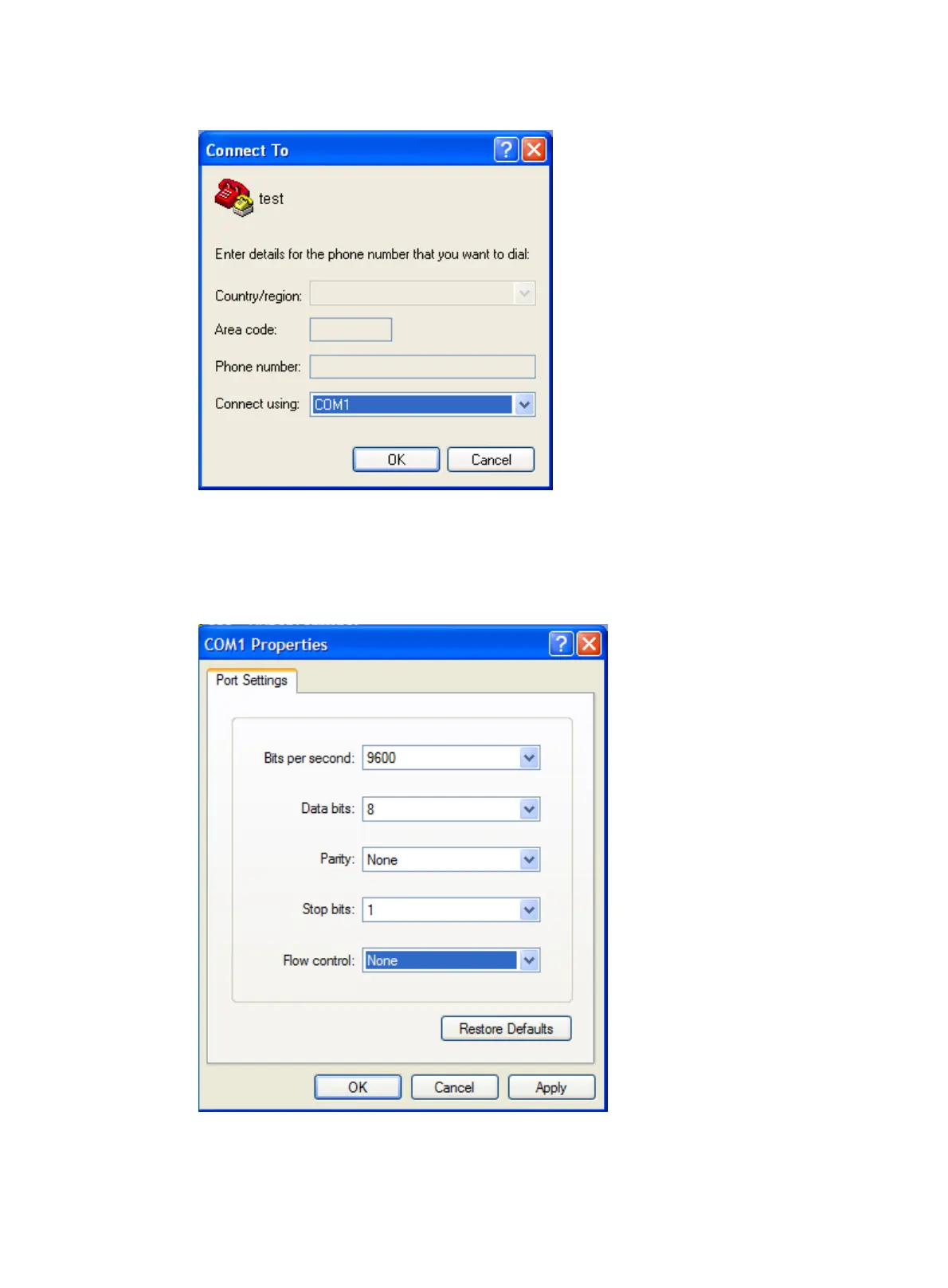 3. Set Bits per second to 9600, Data bits to 8, Parity to None, Stop bits to 1, and Flow control to None,