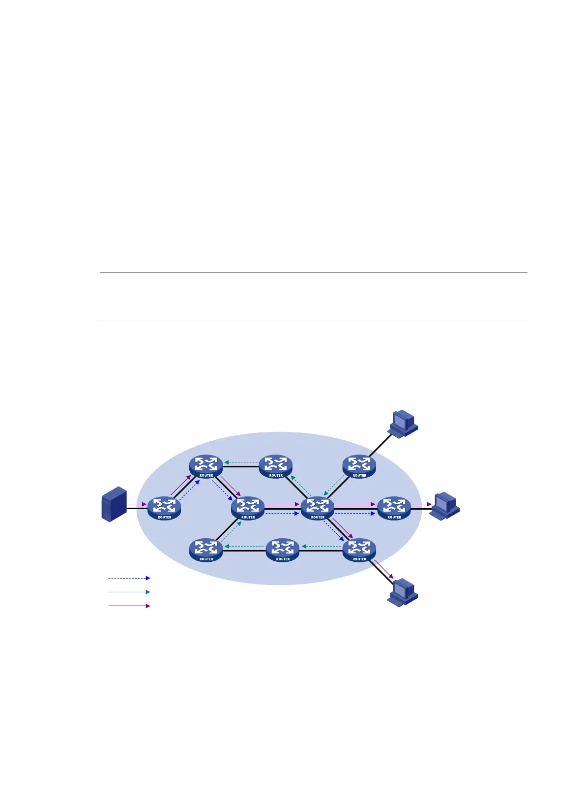 2. The nodes without downstream receivers are pruned. A router that has no downstream receivers