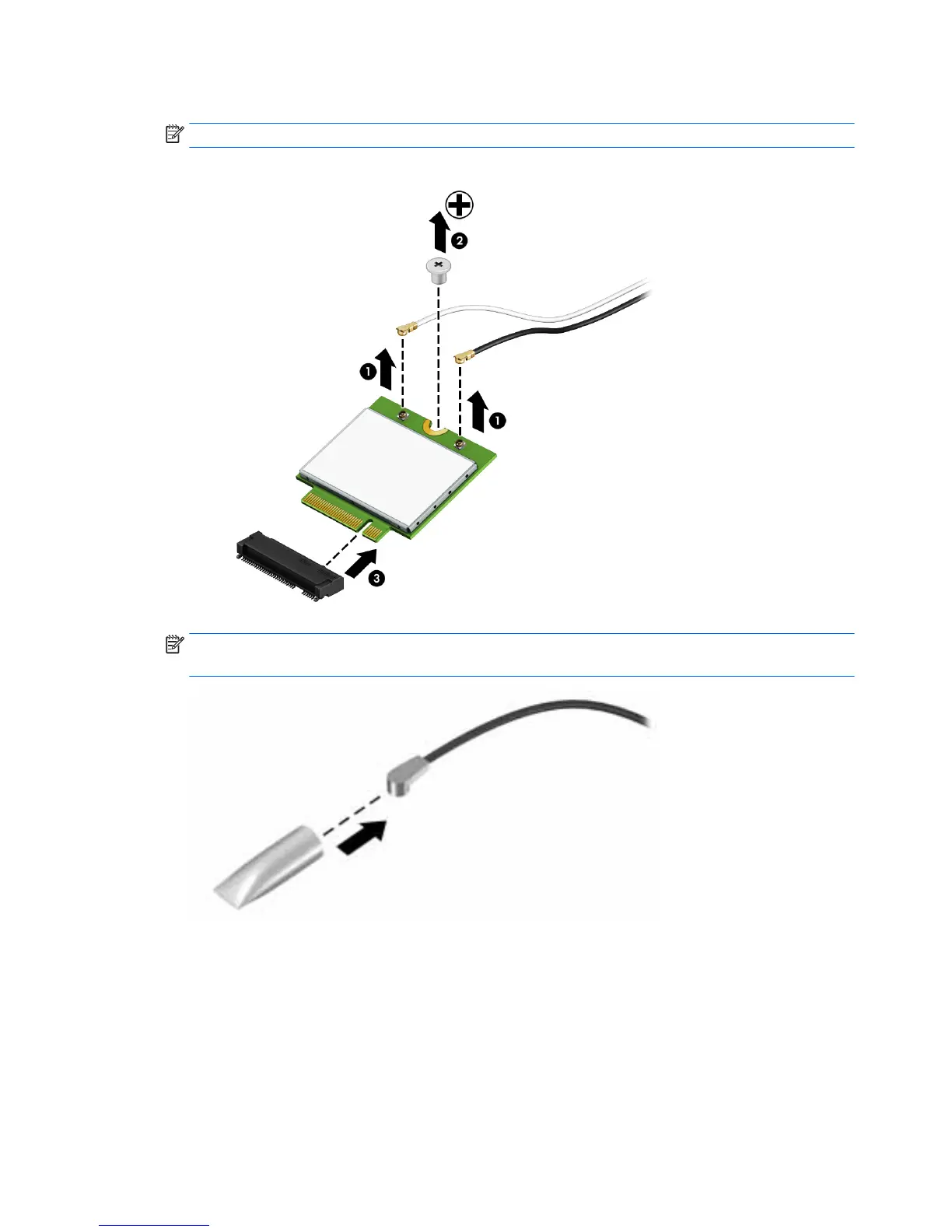 NOTE: If the WLAN antennas are not connected to the terminals on the WLAN module, the protective