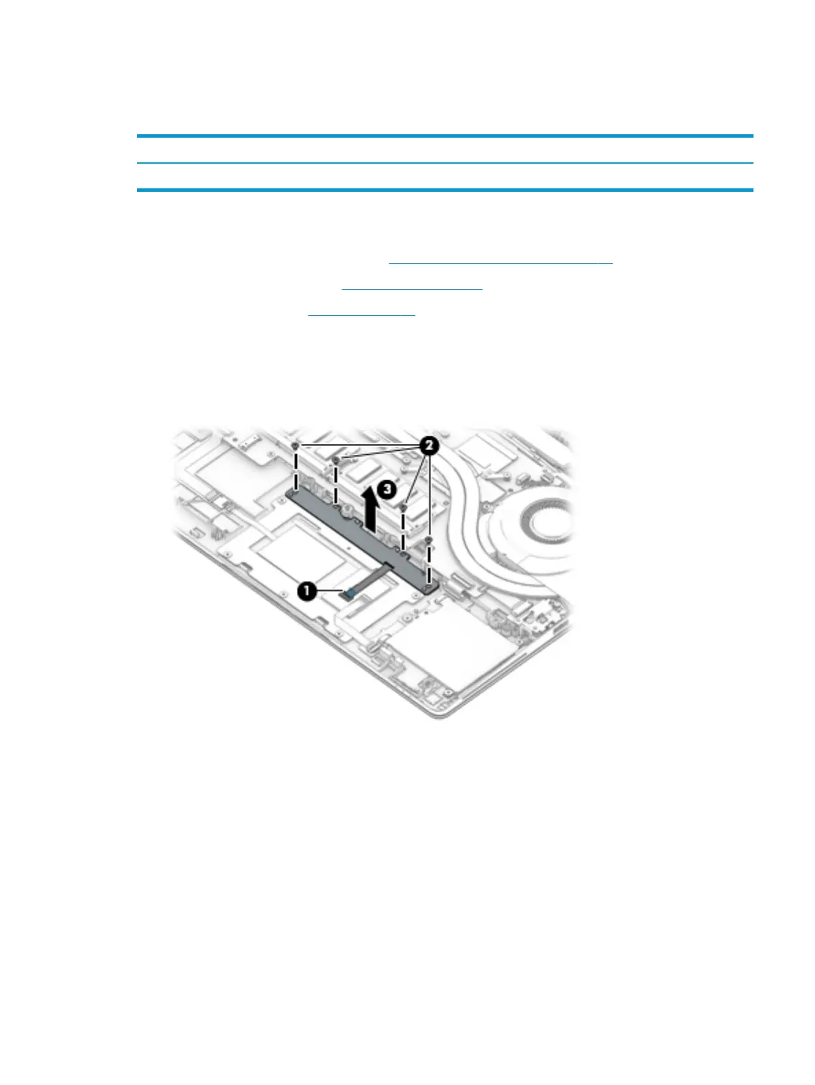 1. Disconnect the touchpad button board cable from the ZIF connector on the touchpad (1).
