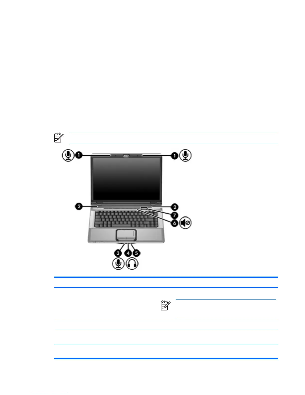 The following illustration and table describe the audio features of the computer.