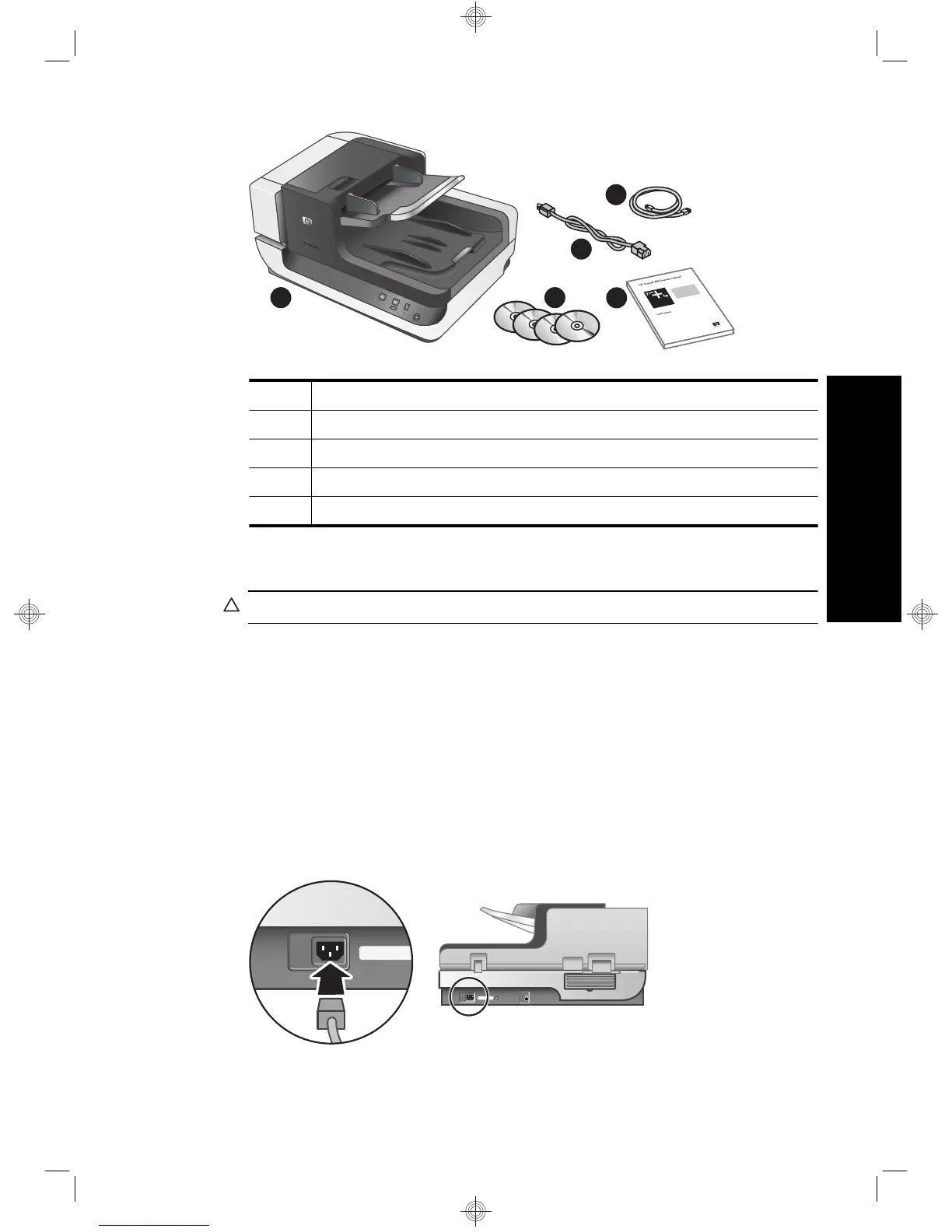 使用電源線將掃描器連接至電源插座。