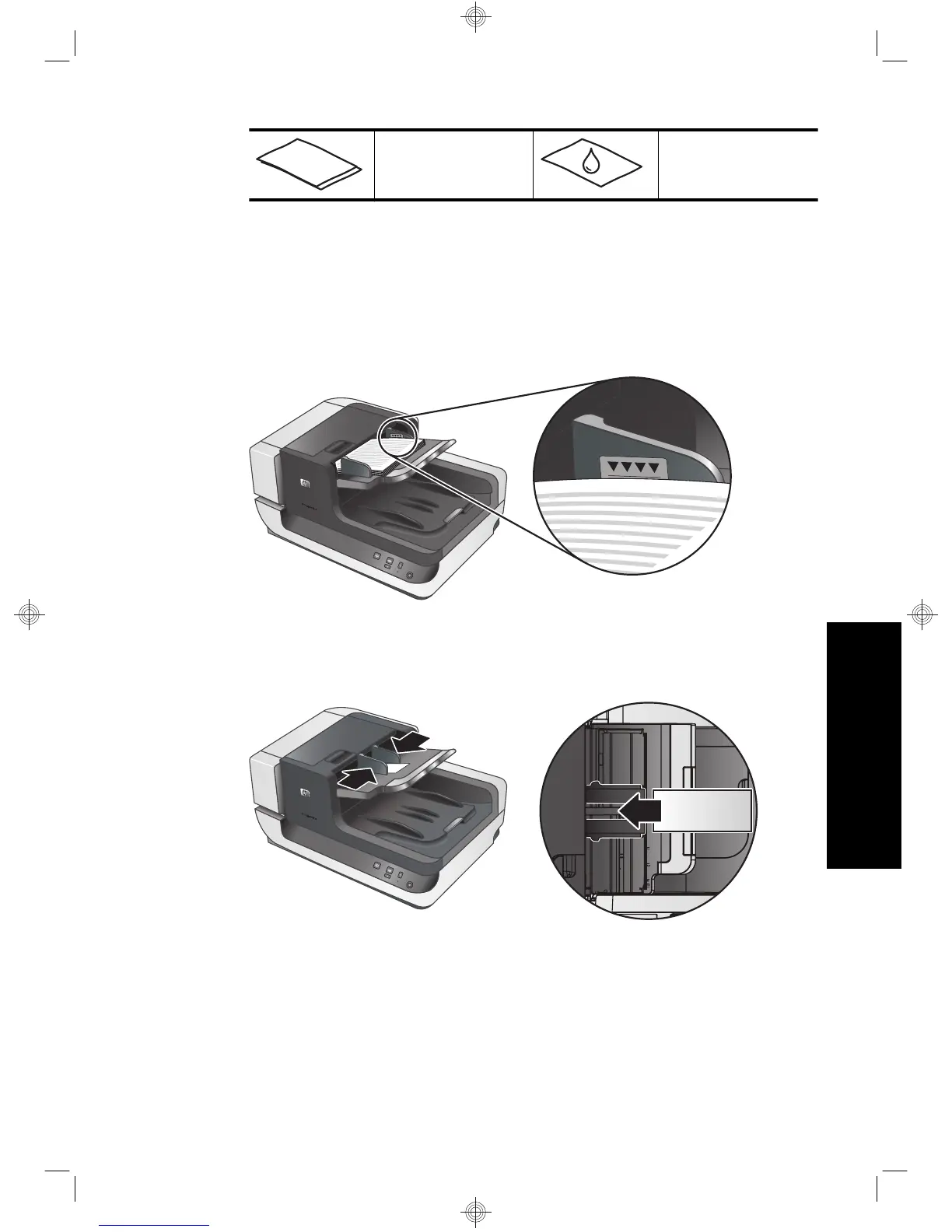 소형 문서나 좁은 문서일 경우, 148mm 미만인 문서 끝 부분을 피더 쪽으로