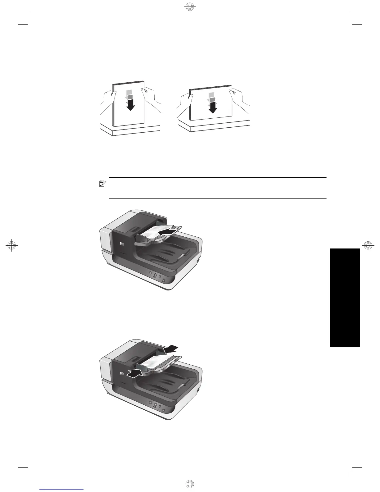 용지 조정대를 문서 너비 쪽으로 조정합니다. 급지를 제한할 수 있기 때문에