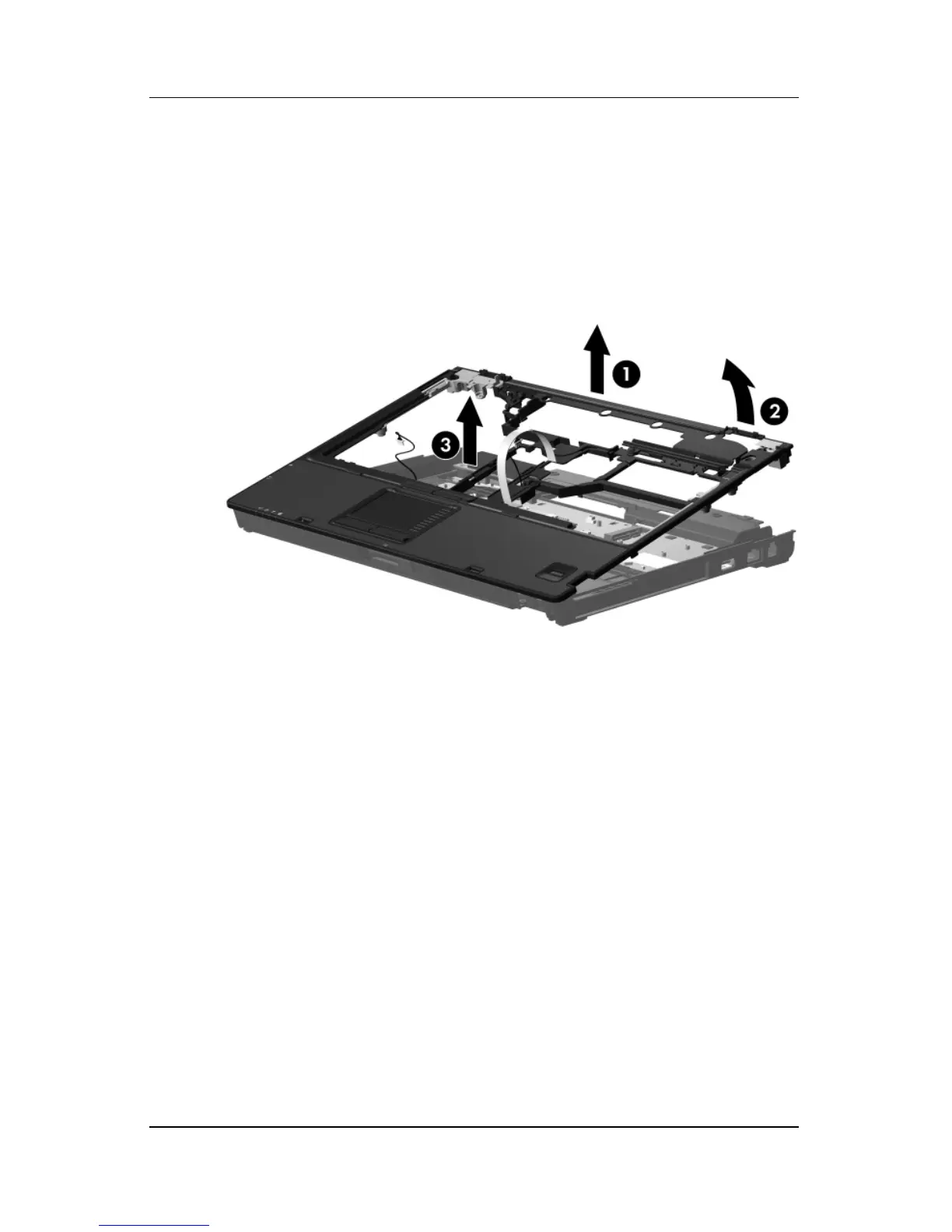 8. Swing the rear edge of the top cover 1 up and forward 2