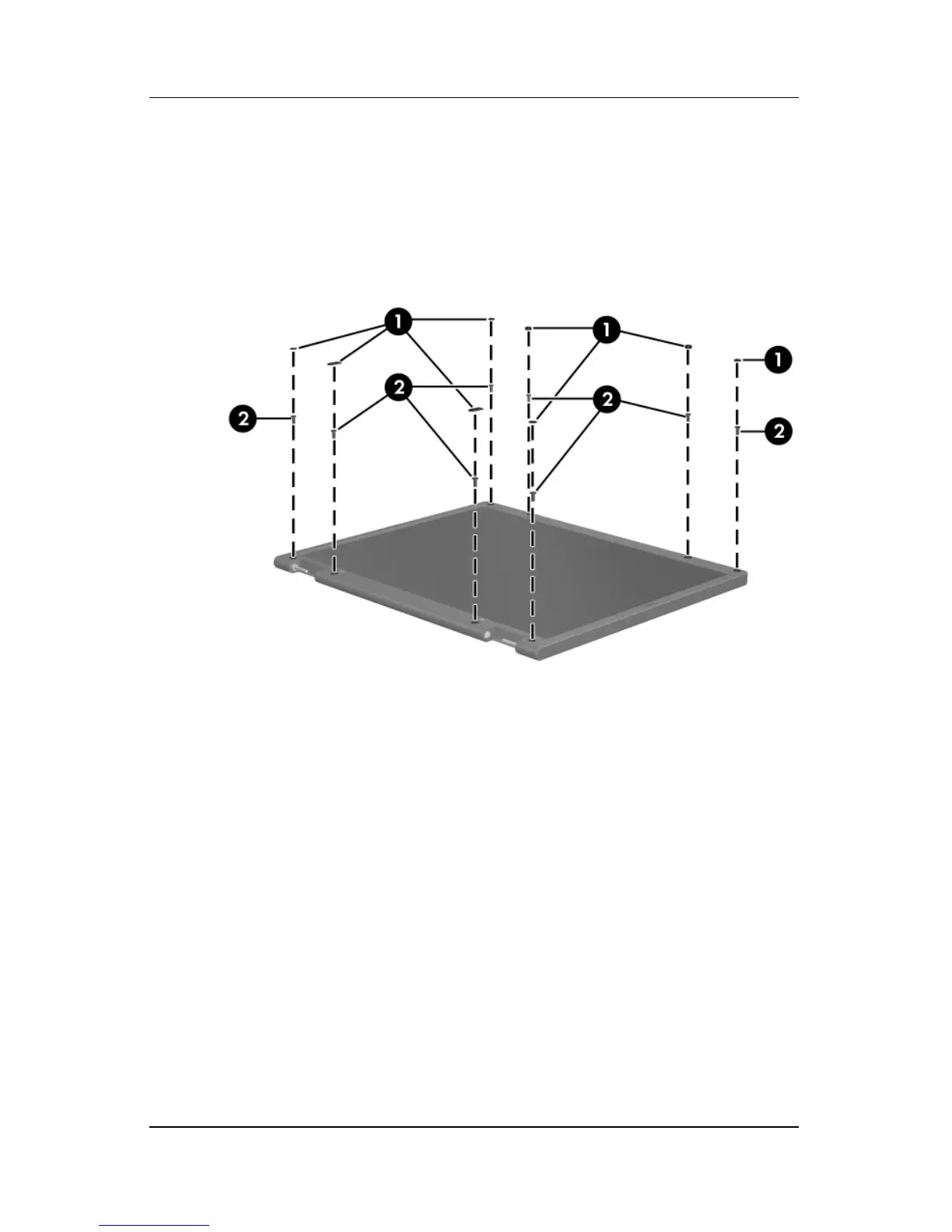 1. Remove all screw covers 1 and screws 2 that secure the