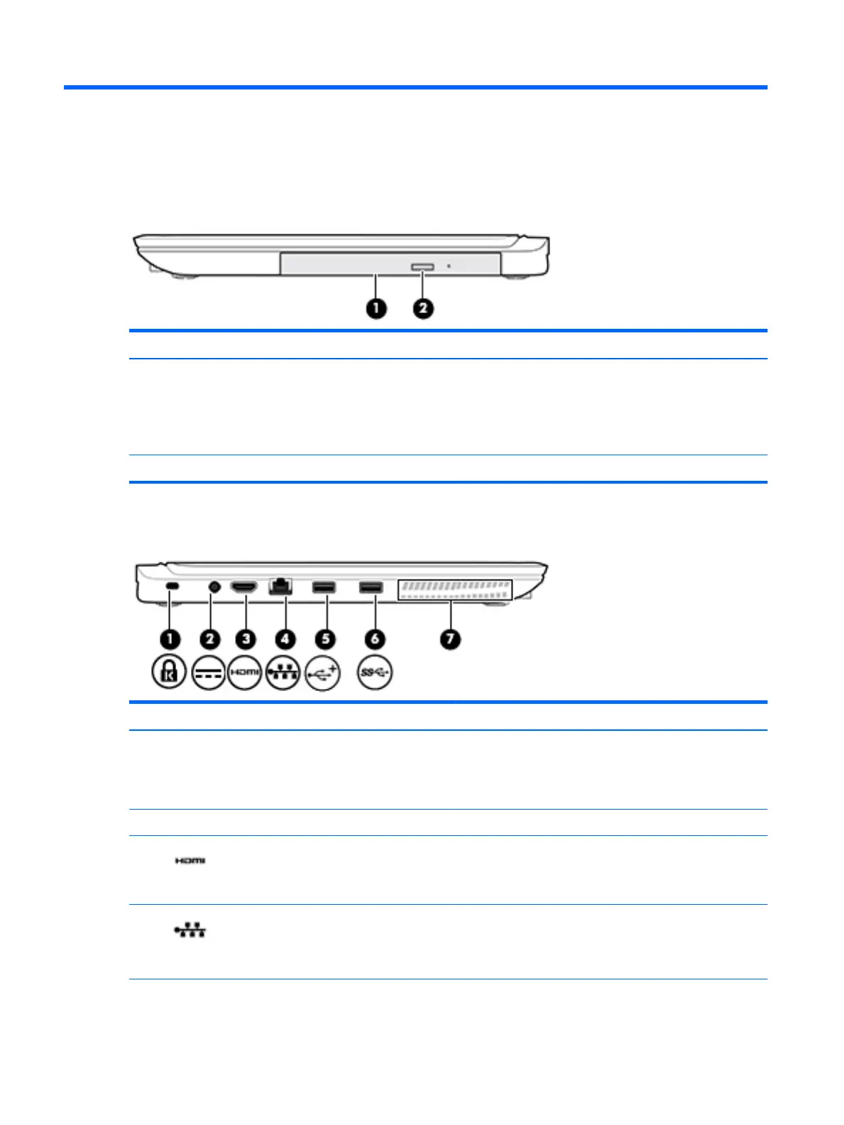 (3) HDMI port Connects an optional video or audio device, such as a high-