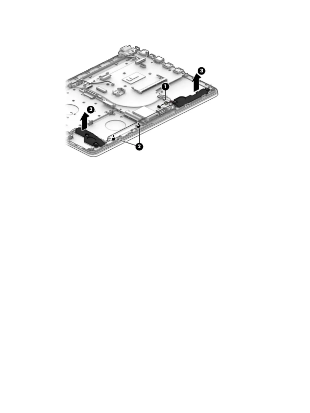 3. Lift the left speaker and the right speaker (3) to remove them.