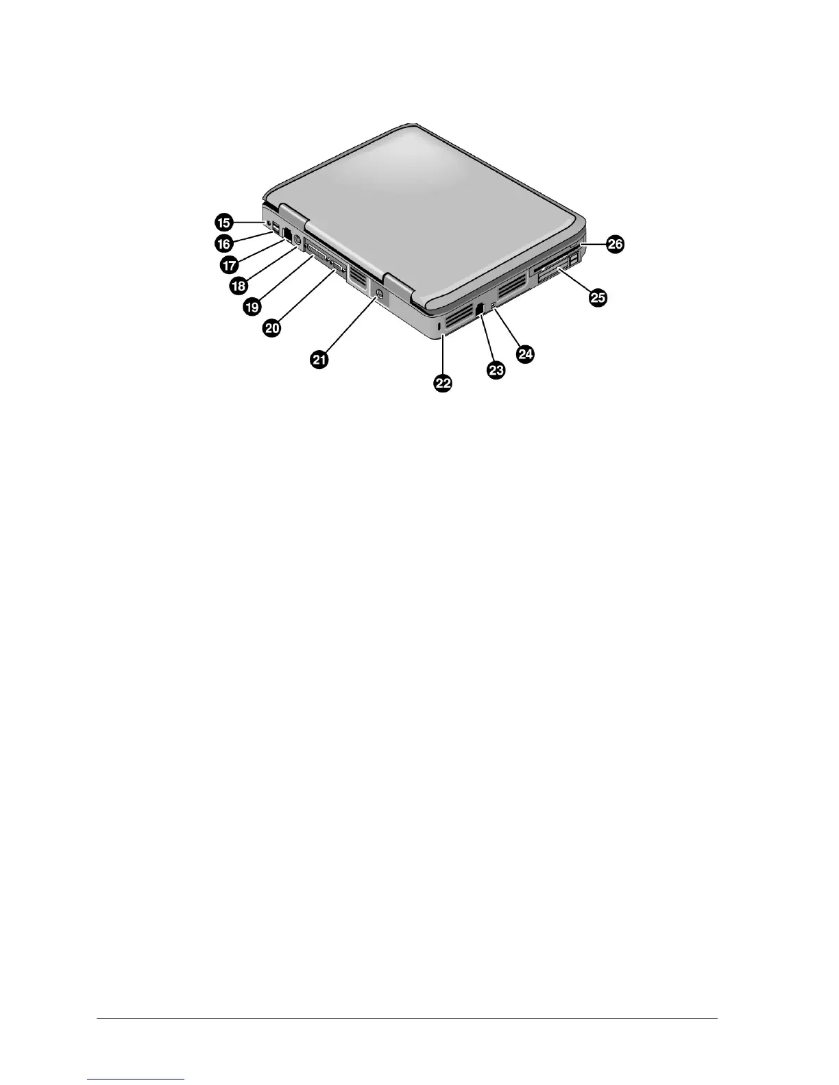25. PCMCIA card and CardBus slot and button.