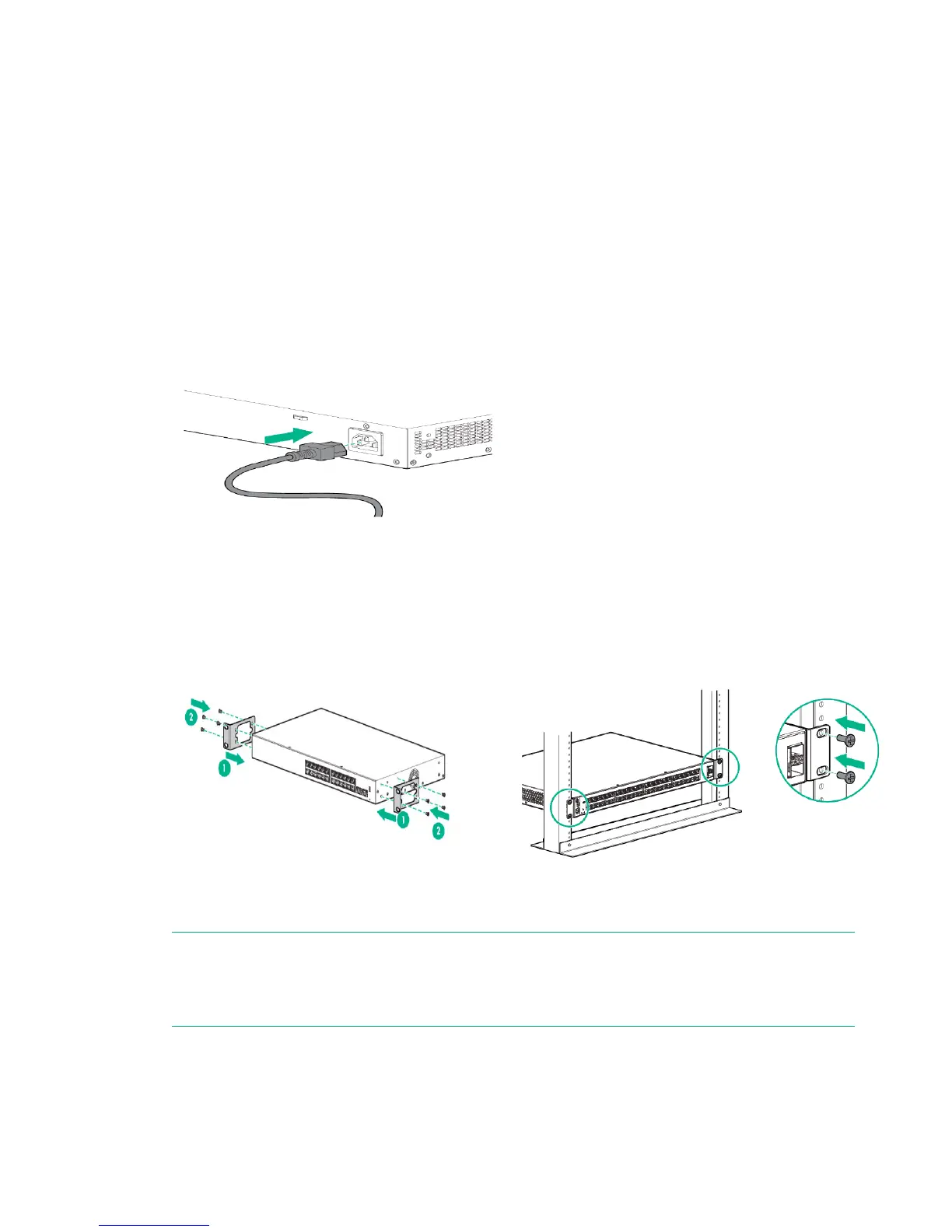 NOTE: The HPE OfficeConnect 24-port and 48-port switches can also be mounted in