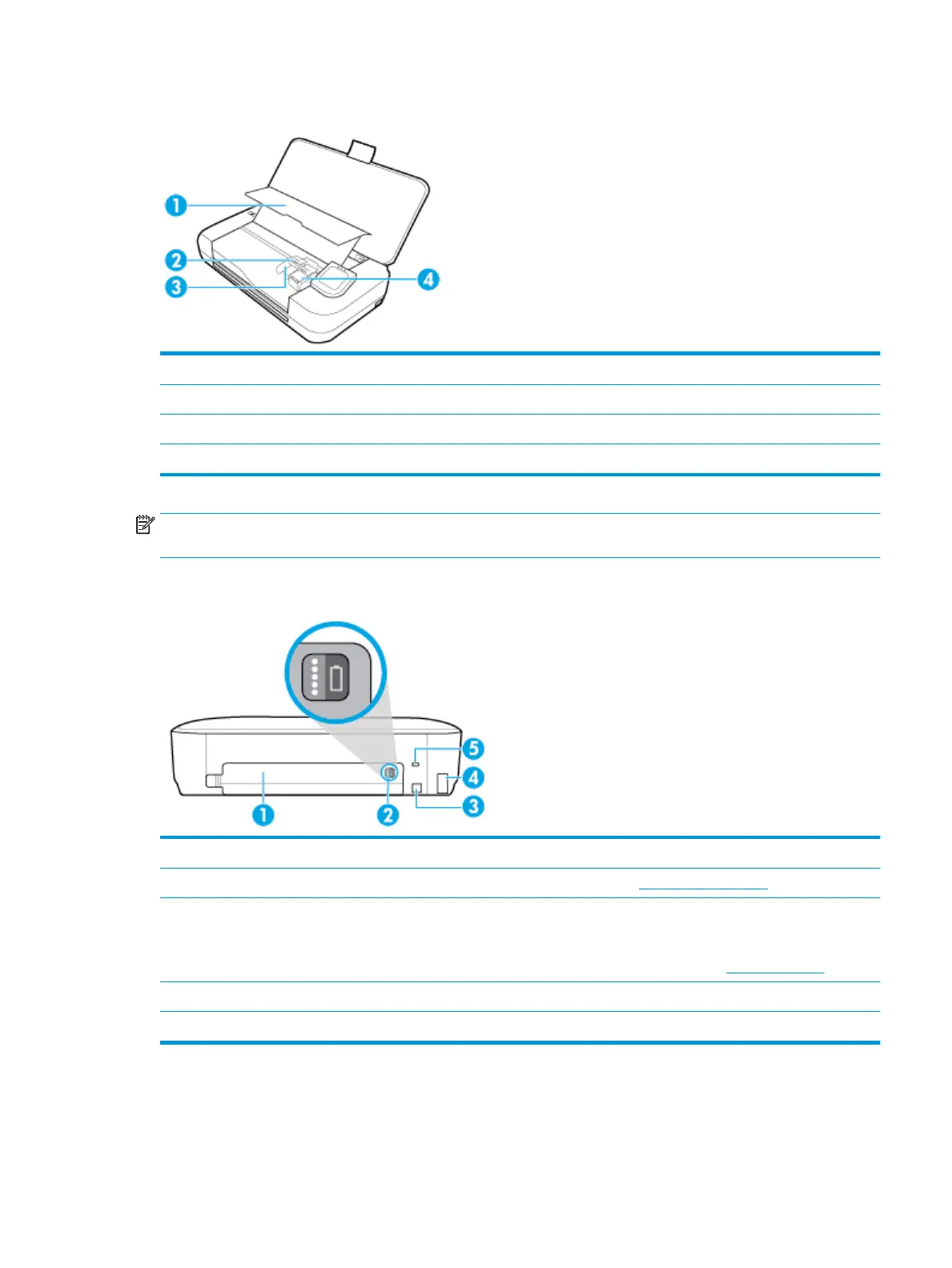 5 Security lock slot: Allows you to insert a security cable to lock your printer.