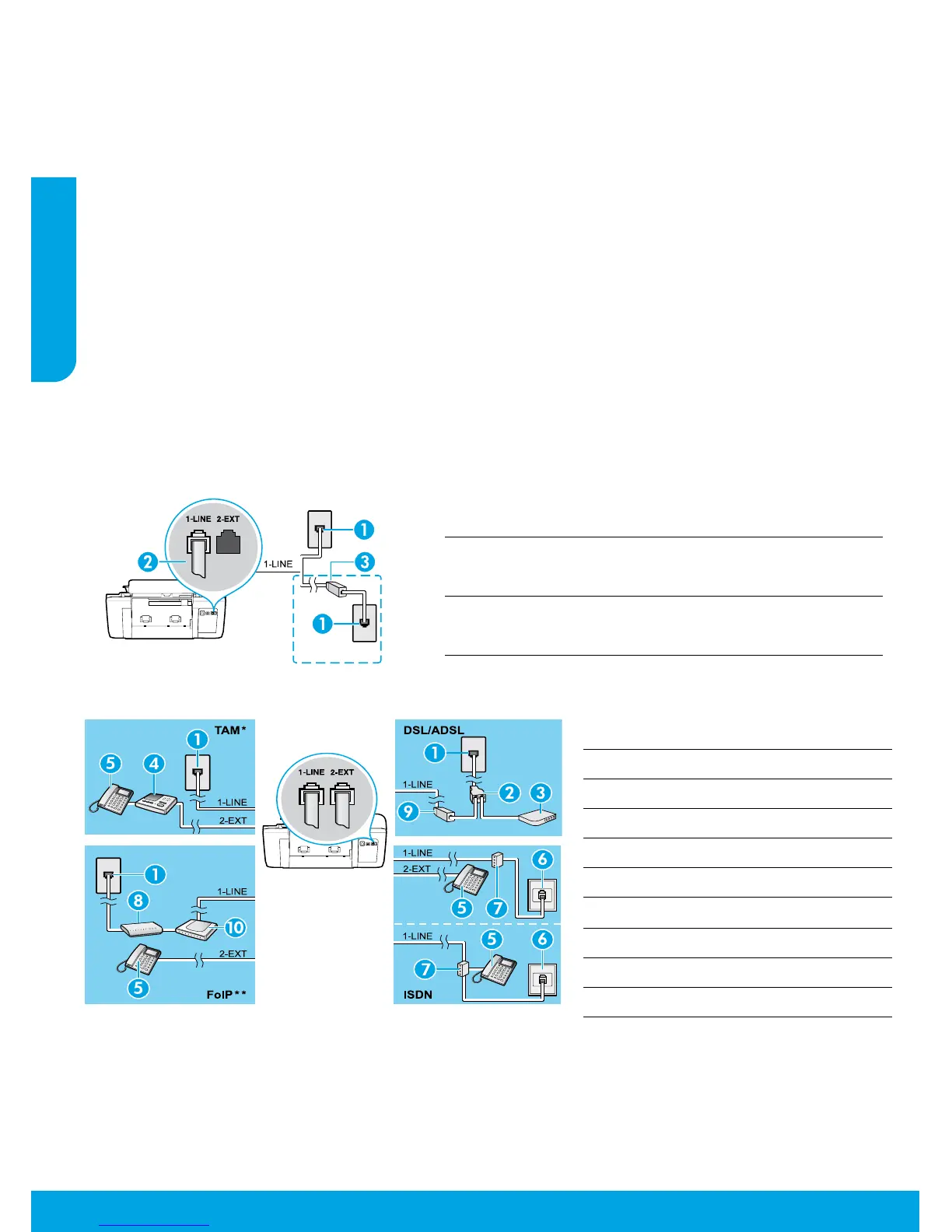Nota: Si se ha suscrito a un servicio DSL/ADSL, conecte un ltro DSL/ADSL entre el puerto 1-LINE y la entrada de pared.
