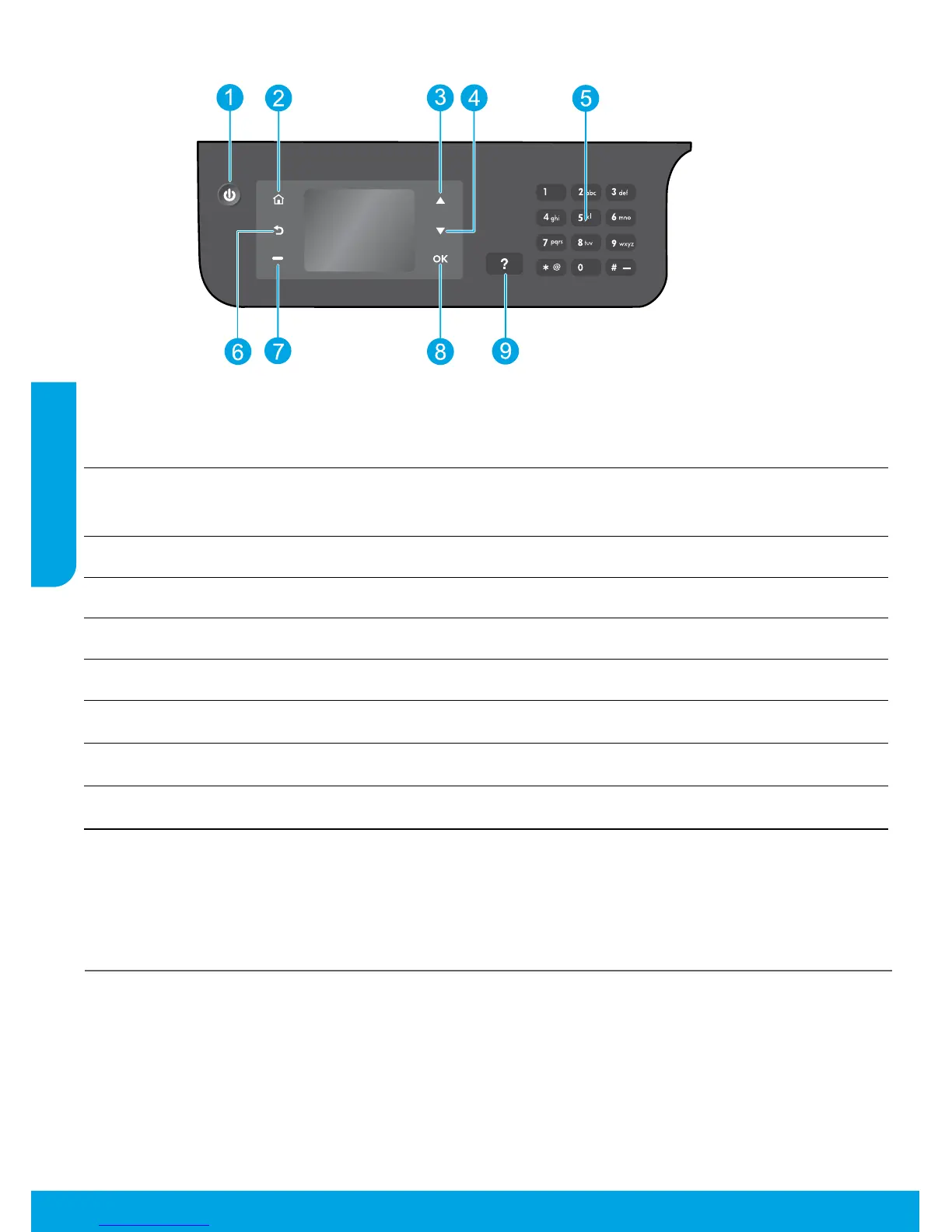 Botão Início: Faz você retornar à tela Início, em que é possível acessar o menu Cópia, Fax ou