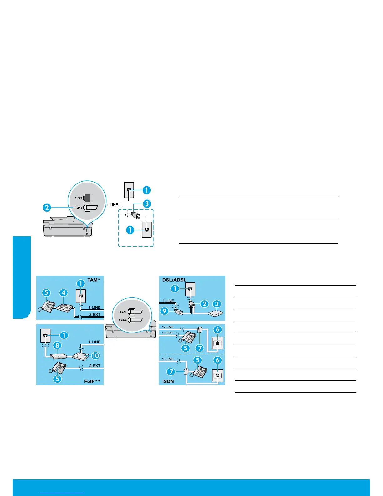 Remarque: Si vous êtes abonné à un service DSL/ADSL, connectez un ltre DSL/ADSL entre le port 1-LINE et la prise